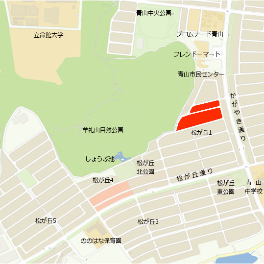 松が丘1丁目は、松が丘の入り口。プロムナード青山やフレンドマート青山店、青山市民センターにも近く、大変便利な場所です。区画はすべて100坪以上のゆとり区画。広い庭で子どもやペットを遊ばせたり、ガーデニングやバーベキューをしたり、友人を招いてホームパーティーなど---。季節を感じながらくつろげる快適な暮らしを実現できます。